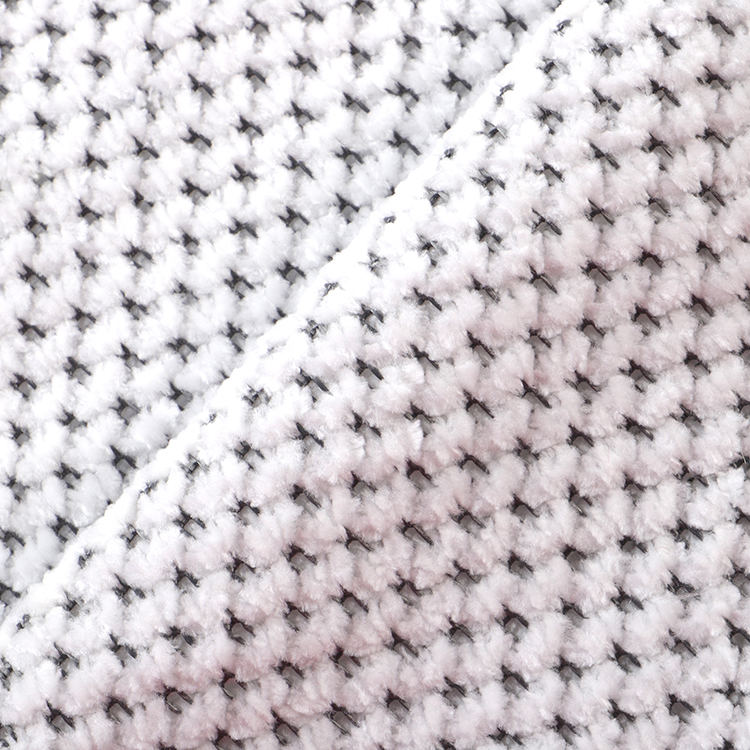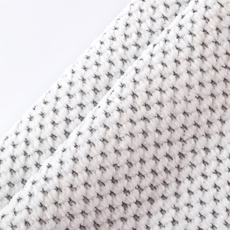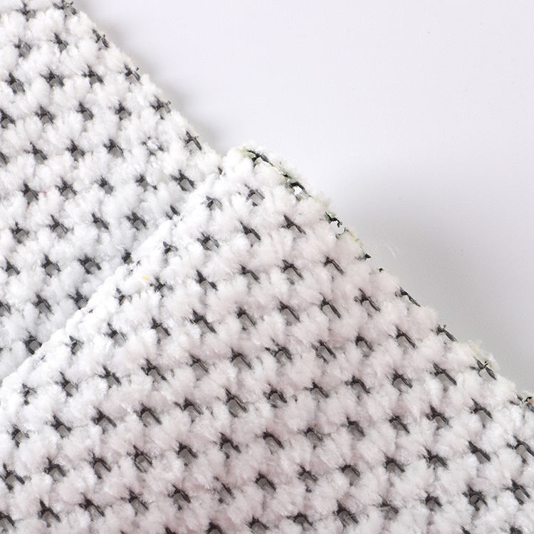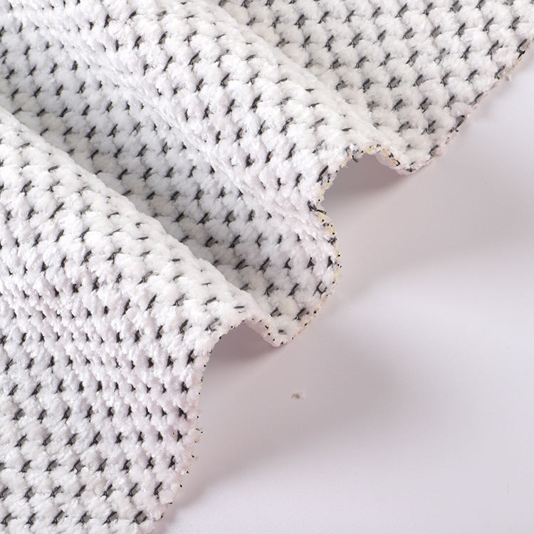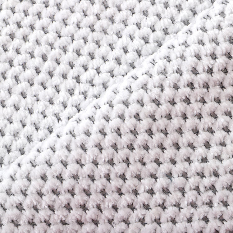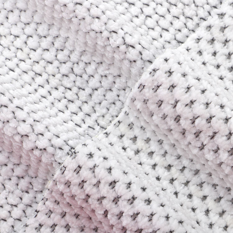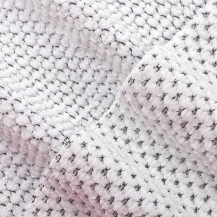 Chenille A# Fabric có chiều cao cọc thấp là 1mm, góp phần vào vẻ ngoài bóng bẩy và tinh vi của nó trong khi dễ dàng dọn dẹp và bảo trì. Các kỹ thuật dệt kim được sử dụng trong sản xuất của nó tăng cường sức mạnh và tuổi thọ của vải, làm cho nó trở thành một lựa chọn lý tưởng cho thảm và thảm.