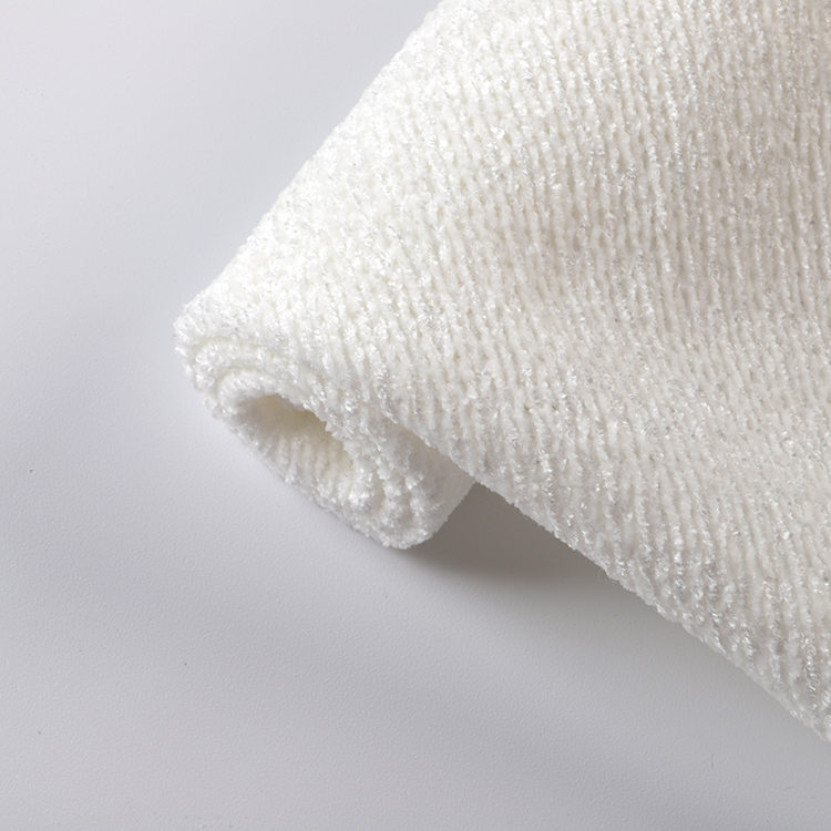 Vải Chenille lưới mịn của chúng tôi có màu trắng PFP nguyên sơ, thêm một cái nhìn sạch sẽ và tinh vi vào các sản phẩm của bạn. Với số lượng đơn hàng tối thiểu là 500kg mỗi màu, chúng tôi phục vụ cho nhu cầu sản xuất quy mô lớn một cách hiệu quả. Vải được đóng gói bởi các cuộn, tạo điều kiện xử lý và lưu trữ dễ dàng.
