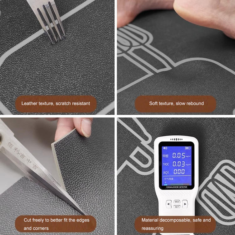 Có sẵn ở các kích cỡ khác nhau, bao gồm 40*60cm, 40*120cm, 50*80cm, 50*120cm, 50*150cm, 60*90cm và 60*160cm, hoặc tùy chỉnh theo nhu cầu của bạn, thảm được chế tạo từ da PU cao cấp. Vật liệu này không chỉ đảm bảo vẻ ngoài bóng bẩy, hiện đại mà còn tự hào có trọng lượng đáng kể là 2300GSM, làm cho nó đặc biệt mạnh mẽ và thoải mái. Với độ dày 4mm, nó cung cấp phần đệm dưới chân trong khi vẫn duy trì một cấu hình mỏng phù hợp với bất kỳ trang trí nào.